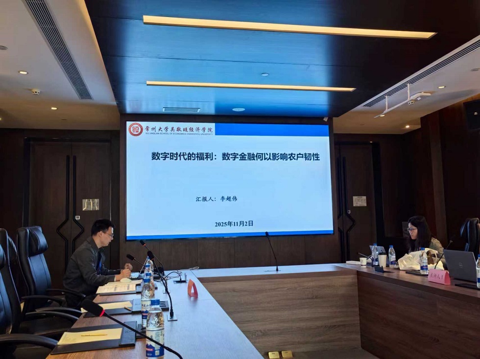 李超伟博士做了题为《数字时代的福利:数字金融何以影响农户韧性》的论文汇报,该论文是其主持的国家社科基金青年项目和教育部人文社会科学研究青年基金项目的阶段性研究成果。论文以FAO韧性评估框架为核心,对数字金融与农户韧性之间的因果关系、作用机制与结构效应等进行了系统分析。参会学者对该论文进行了热烈讨论,点评嘉宾从研究视角、研究方法、研究框架等方面肯定了研究价值,并提出了进一步完善的中肯建议。
